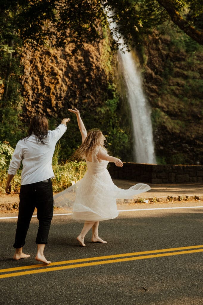 We started at Wahclella Falls, one of the most beautiful waterfall locations in the Columbia River Gorge. The mist wrapped around them while they danced barefoot on moss-covered rocks, laughing like no one else existed.