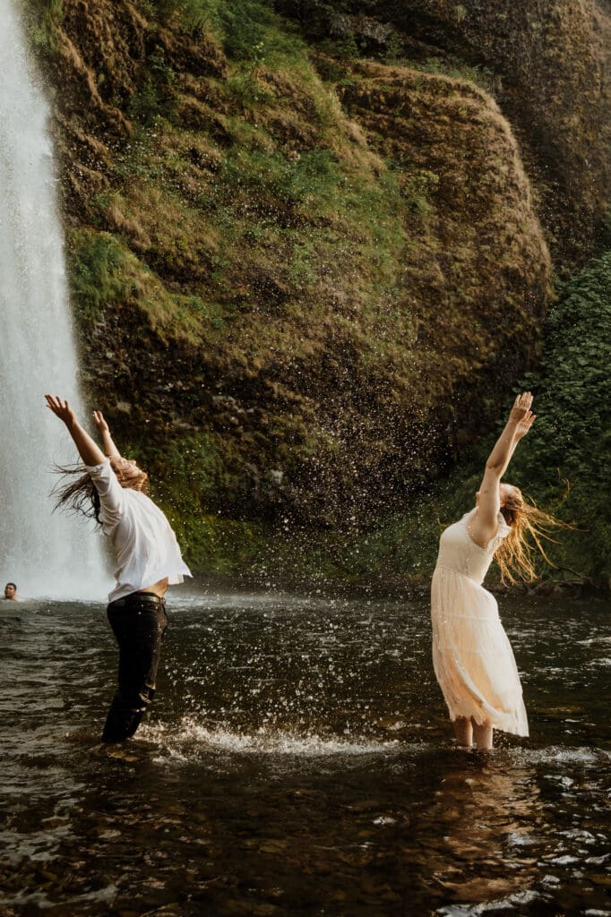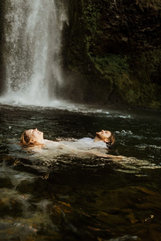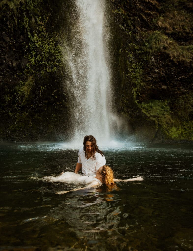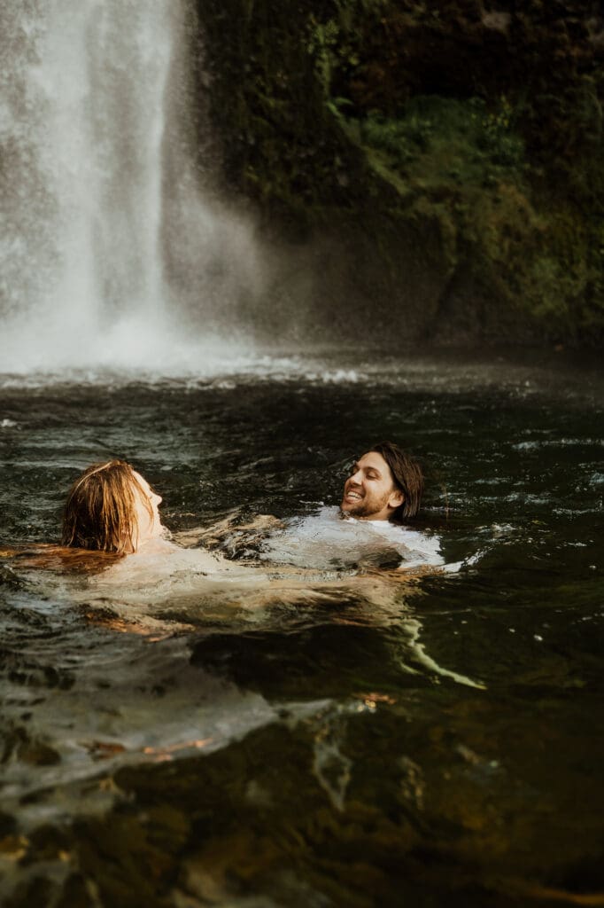 If you’re planning a Columbia River Gorge engagement session and want to actually get in the water, Horsetail Falls is iconic. And they didn’t hesitate. They swam. They splashed. They held each other like the world had faded away.